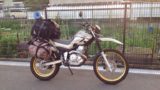 たくさんのオフロードバイクが停まっています。
